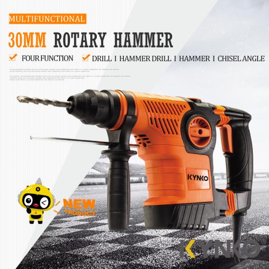 30MM Electric Rotary Hammer with strong power and durable quality. With safety clutch, Anti-vibration technology, quick change chuck, etc. new technology. Designed & Manufactured by KYNKO Power Tools, Quality Guaranteed.